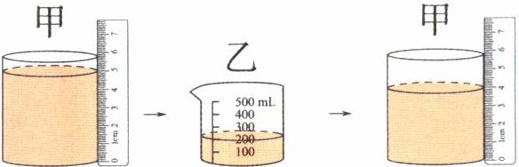 如图,将甲杯中的一部分橙汁倒入空的乙杯中,甲杯中剩下的橙汁大约有(