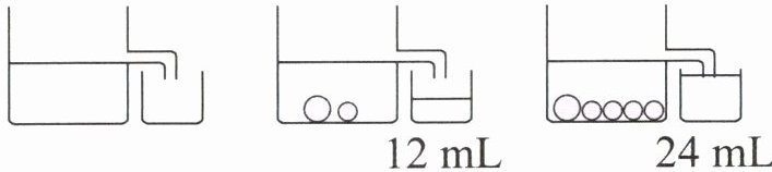 7. 下图中若只放入 1 个大球,则溢出的水有(