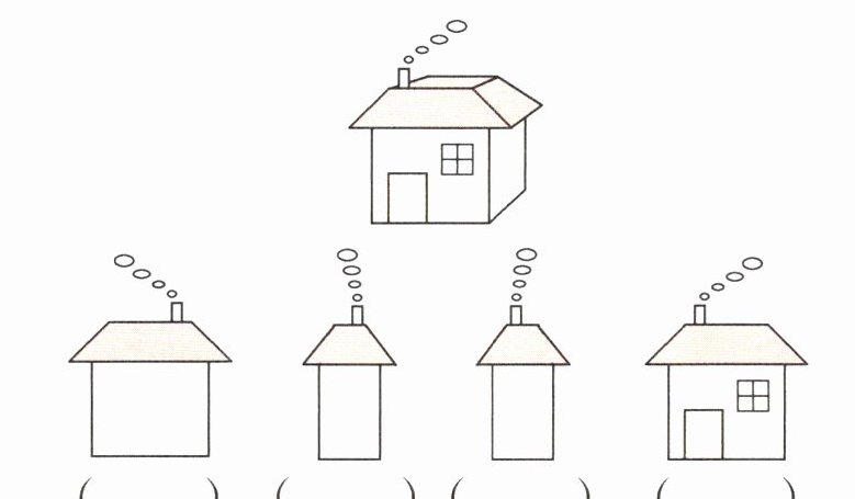 3. 请分别在括号里注明下面的4张照片分别是从房子的哪一面拍的。