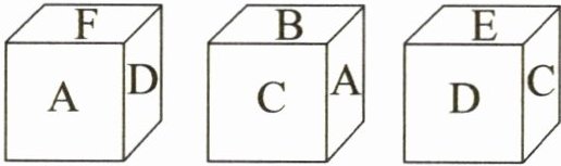 6. A、B、C、D、E和F分别在正方体的六个面上。根据图中正方体的3种不同摆法,判断相对两个面上的字母各是什么。