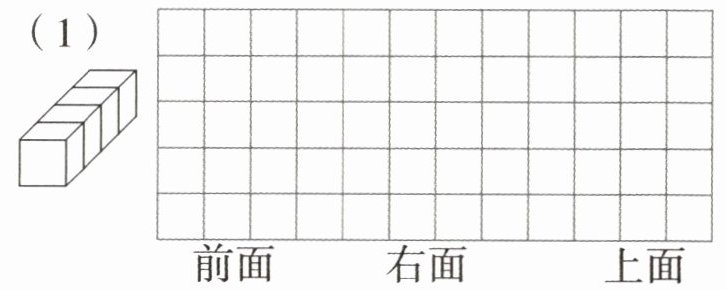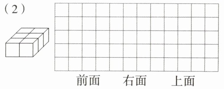 4.(空间观念)用8个同样大的正方体摆成一个长方体,从上面看是□□□□,应该怎样摆?先摆一摆,再在方格纸上分别画出从前面和右面看到的图形。