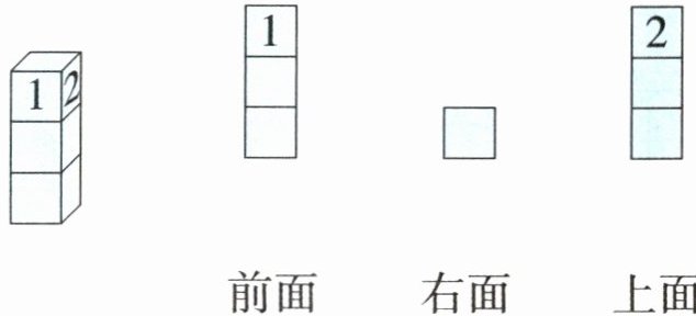 用3个同样大的正方体摆成一个如图所示的长方体。下面的图形分别是从哪一面看到的?