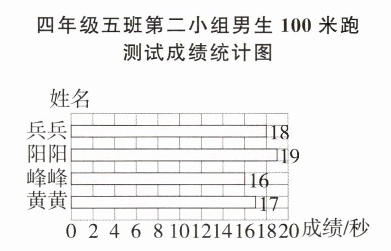 1. (苏州姑苏真题)下面是四年级五班第二小组男生100米跑测试成绩统计图。