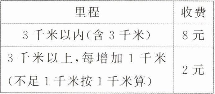 | 3千米以上,每增加1千米(不足1千米按1千米算) | 2元 |
