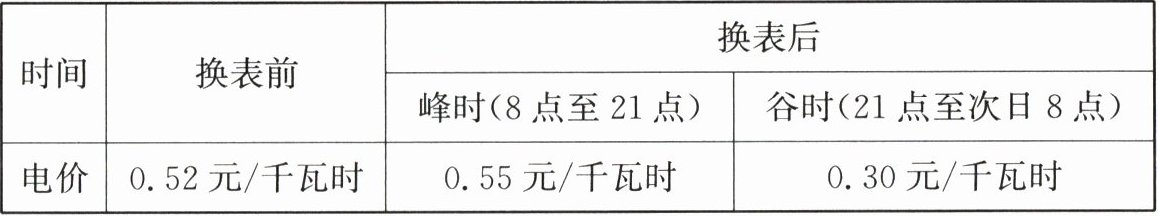 王老师家对换表后最初使用的100千瓦时用电情况进行统计:峰时用电量为80千瓦时,谷时用电量为20千瓦时。与换表前相比,电费下降了还是升高了?