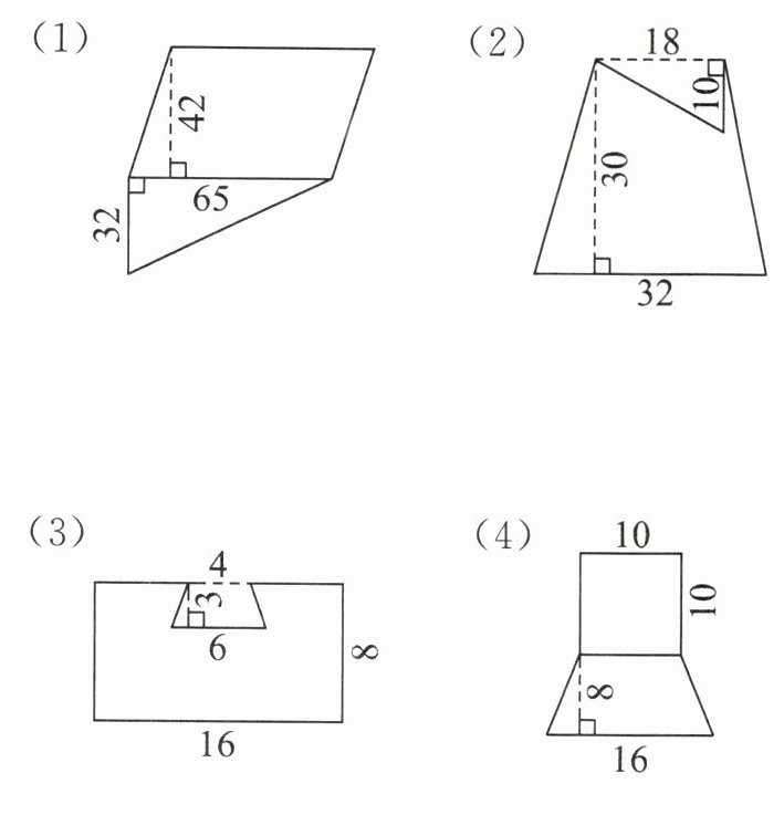 (2)(18+32)×30÷2-18×10÷2=660(平方厘米)