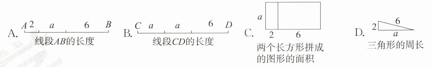 13. 对于2a+6这个式子,四位同学分别画图表示自己的理解。正确的是(