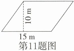 11. 如图,一块平行四边形菜地,底是15米,高是10米。如果它的高不变,底增加a米,则周长增加(