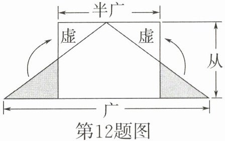 12. 古代数学名著《九章算术》中记载的三角形面积计算方法是“半广乘正从”(“广”指三角形的底,“从”指三角形的高)(如上图)。如果三角形的底是14厘米,高是5厘米,那么转化成长方形的长是(