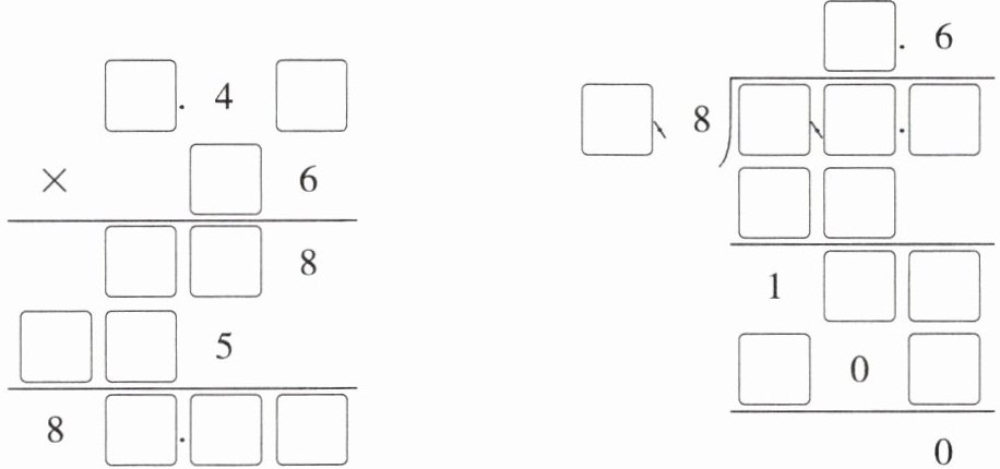 7. 将竖式补充完整,并确定第二个因数中小数点的位置。