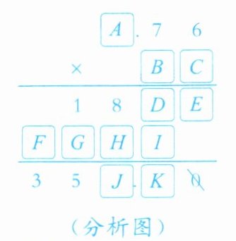 (2) 根据 A76×5= 18DE,可知 A= 3,代入算式得 376×5= 1880,可知 D= 8,E= 0;