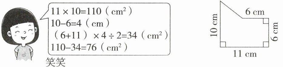 (6 + 10)×5÷2 + 6×6 = 76(平方厘米)