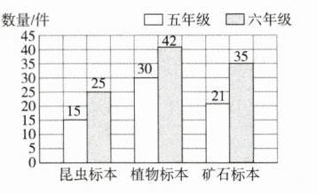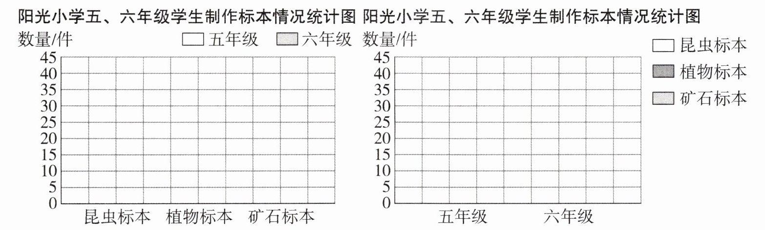 (3)六年级学生制作标本件数更多,是看第二幅统计图比较出来的