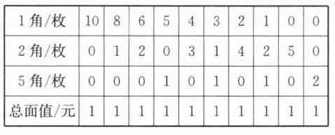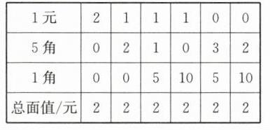 4. 果果有4枚1元、3枚5角、11枚1角的硬币,要想从中取出2元买一支圆珠笔,有几种取钱的方式?