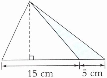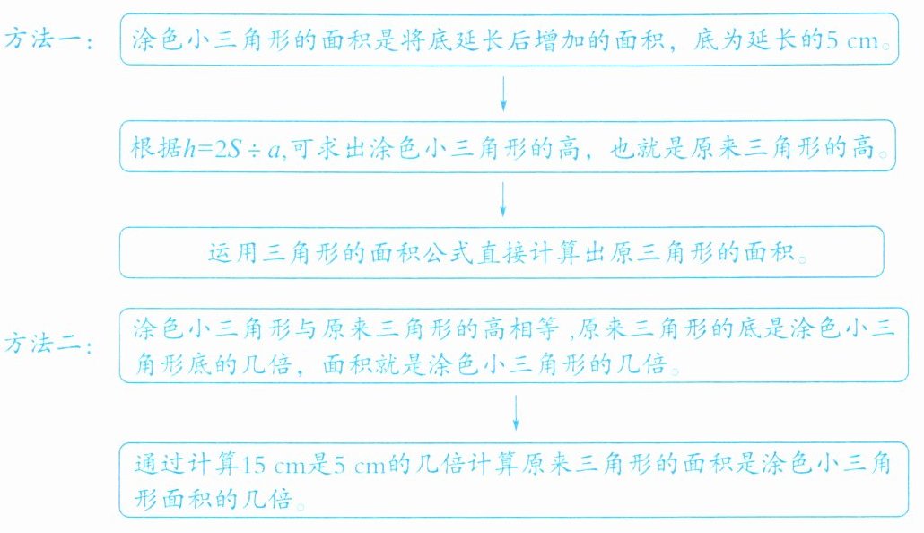 例2 如图,三角形的底是15厘米,如果将底延长5厘米,那么面积就增加30平方厘米。原来三角形的面积是多少平方厘米?