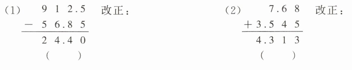 4. 下面的计算对吗?对的画“√”,错的画“×”,并改正。