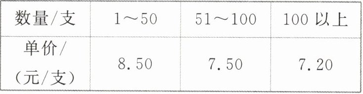 7. (宁德福安真题)下表是文具店某种钢笔的批发价格,请完成下面各题。