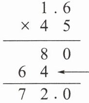 1.(徐州新沂真题)王老师买了45支钢笔,每支1.6元,一共需要多少元?竖式中“←”所指的64表示(
