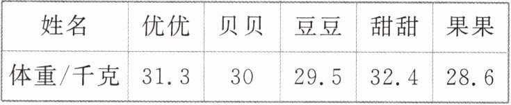 (31.3+30+29.5+32.4+28.6)÷5≈30.4(千克)