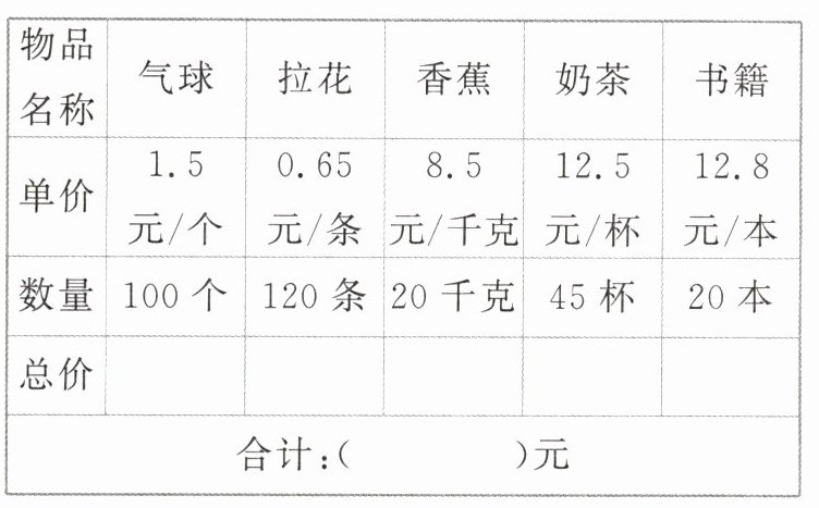 )。(填序号)①进行购物,并记录购买商品的单价和数量。