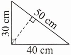 5. 如图,一个直角三角形的两条直角边分别是30厘米和40厘米,斜边长50厘米。斜边上的高是多少厘米?