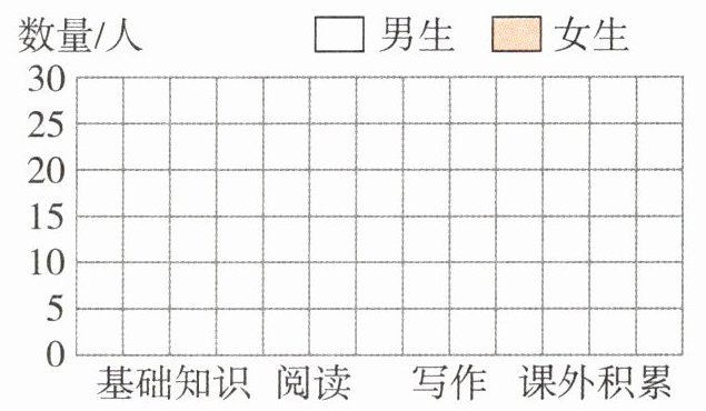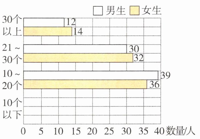 (1)五年级1分钟打字10个以下的男生有23人,女生有15人。请把上面的统计图补充完整。