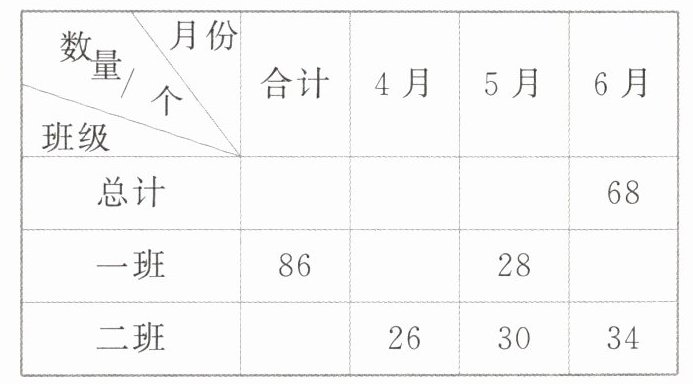 欣欣小学五年级两个班 4~6 月份回收易拉罐情况统计表