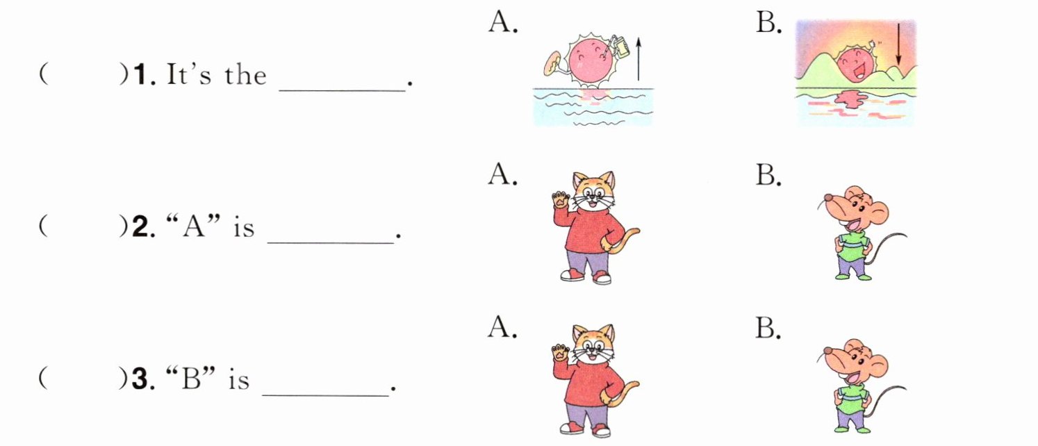 )3. 早上刘涛在校门口遇见王老师,刘涛会说:______A. Good morning, Liu Tao. B. Good morning, Miss Wang.