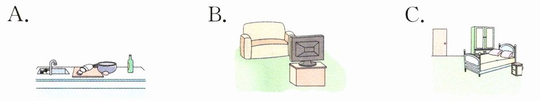 )3. Nick's ______ is watching TV(看电视).A. grandpa B. father C. sister