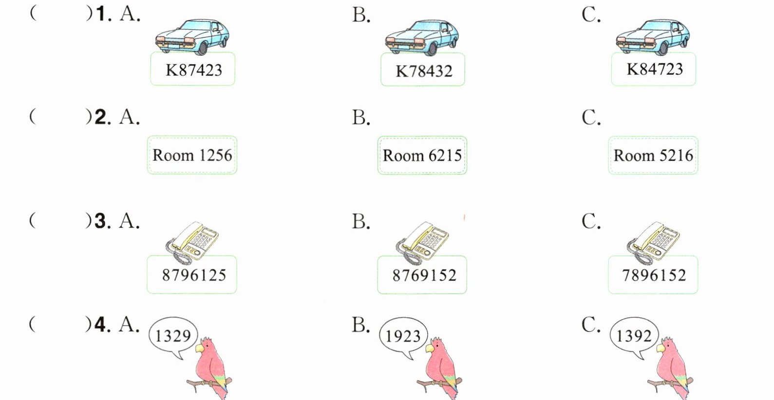 )1. Wang Bing gets a ____.A. book B. cat C. car