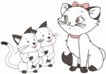 )2. The cat has a big mouth, two small eyes and two short ears.(