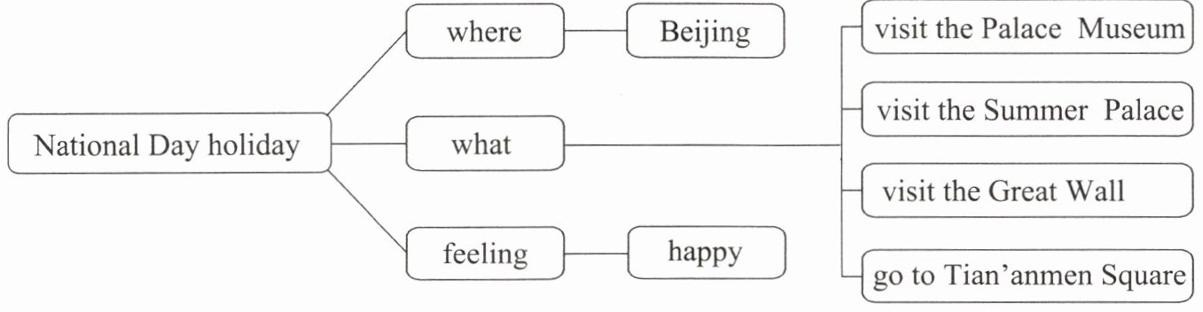根据思维导图写一篇国庆节出游的日记。要求:语句通顺,思路清晰,不少于6句话。
