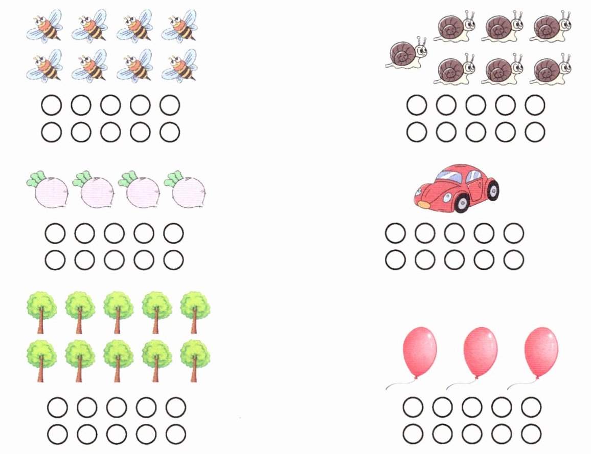 涂8个 涂7个 涂4个 涂1个 涂10个 涂3个 提示 涂色的圆圈数量和图案的数量一样多。