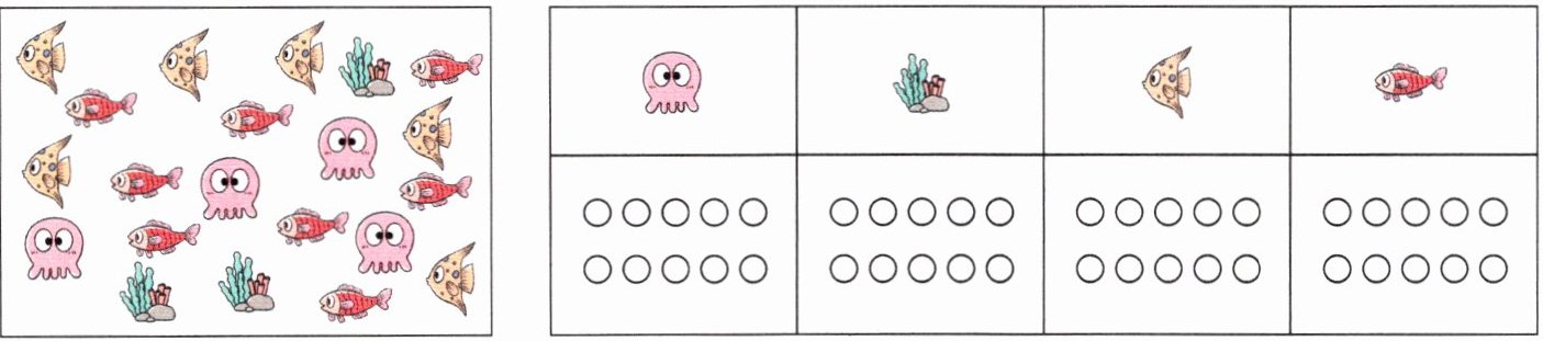 三、实验班原创 数感 海洋是大自然的宝藏,也是地球生命的摇篮,孕育了无数奇妙的生命。快来海底世界数一数,圈一圈。