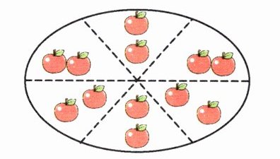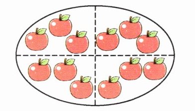 三、把12个苹果平均分,每份分别有几个?写出相应的算式。