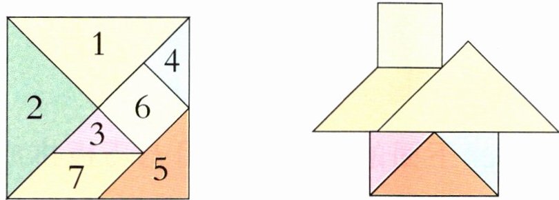 (2)大力用七巧板搭了一个小房子(如右上图),用了(
