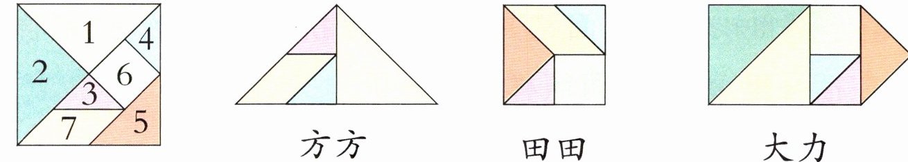 ①只有方方和田田拼的图形面积一样;②这三个图形的面积都不一样;③大力拼的面积最大,方方拼的面积最小;④方方和大力拼的图形面积不一样;⑤方方和田田拼的图形面积不一样。