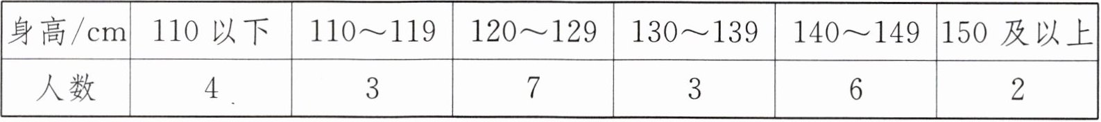 2. 新情境 课外生活 春雨大剧院即将为小朋友们呈现一场探险之旅的精彩表演,学校戏剧社团25名同学报名观看表演,多多整理了他们的身高数据并制成如下统计表。