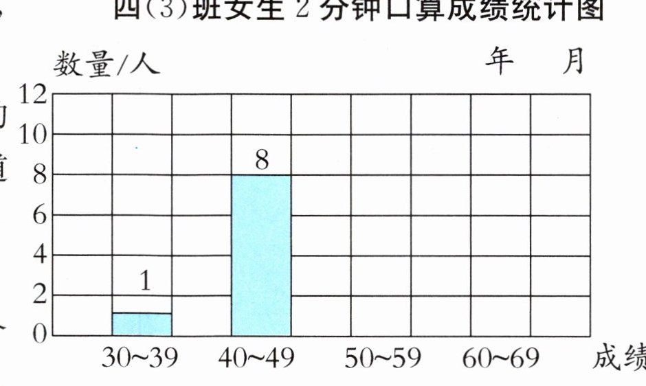 (2)这个班女生2分钟口算的成绩在( )~( )道的人数最多,( )~( )道的人数最少。