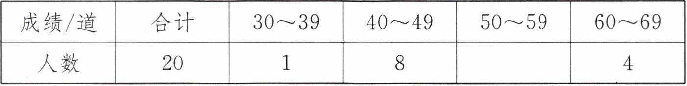 |成绩/道|合计|30~39|40~49|50~59|60~69|