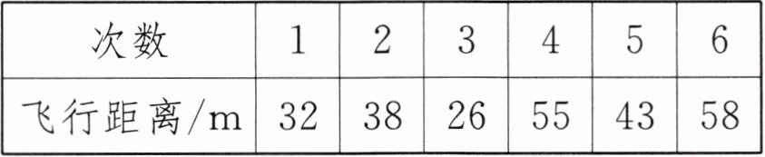 这架飞机前6次的平均飞行距离是( )米。如果前7次平均飞行距离不小于43米,那么第7次试飞的距离不会低于( )米。