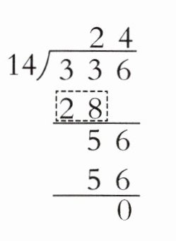 3. 一本故事书有336页,小明每天看14页,多少天看完?右面竖式计算过程中,虚线框内的部分表示(