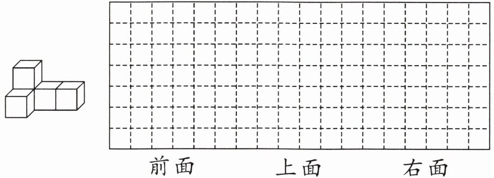 如下图,从前面、上面和右面看到的分别是什么图形?在方格纸上画一画。