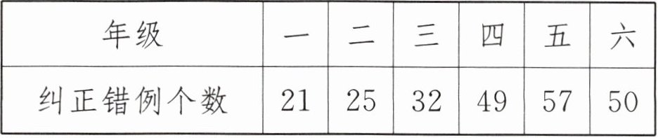 三、传统文化 汉字 汉字是迄今为止持续使用时间最长的文字,也是上古时期各大文字体系中唯一传承者,中国历代皆以汉字为主要的官方文字。汉字是中华灿烂文化的代表之一,可是现实生活中仍有不少人会写错字,为此实验小学开展了“我当汉字小卫士”活动,各个年级都有不少收获。下面是此次活动的统计表,平均每个年级纠正(