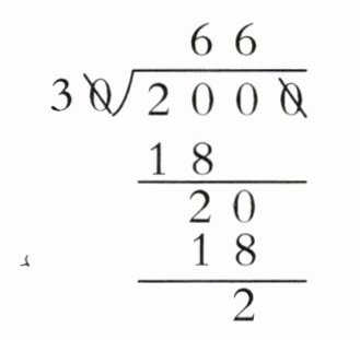 2. 实验班原创 运算能力 计算器是近代发明的可以进行数字运算的机器,中心小学王老师带2000元去商场买计算器,计算器每个30元。可以买多少个,还剩多少元?计算正确的是( )。