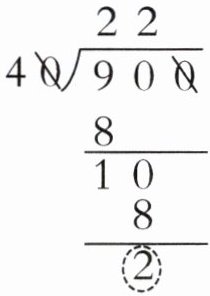 1. 新考法 算理探究 篮球起源与1891年,初衷是为了冬季学生们能进行室内运动。“严老师带900元买篮球,每个40元,可以买多少个?”竖式中圈出的“2”表示( )。