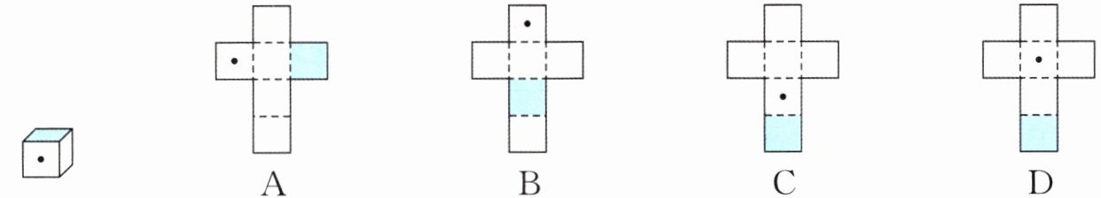 (1)如图,桃桃给花灯的一面涂上蓝色,它的展开图可能是( )。