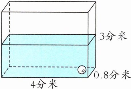 4分米=40厘米 0.8分米=8厘米 33.5÷(40×8)≈0.1(厘米) 提示 本题考查了利用转换法求水面上升高度。水面上升高度=乒乓球体积÷玻璃缸底面积。注意先将长方体玻璃缸长和宽的单位转化成厘米。