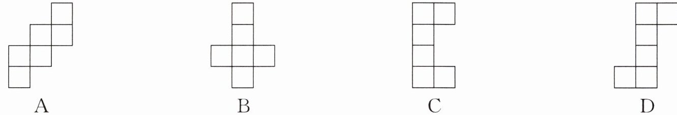 1. 下列各图中,沿着折痕不能折成正方体的是( )。
