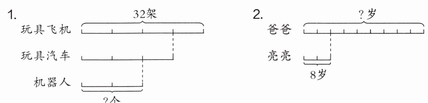 1. 32×$\frac{3}{4}$×$\frac{2}{3}$=16(个) 2. 8×$\frac{9}{2}$=36(岁)